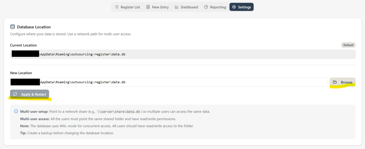 Default filename: OutsourcingRegister_Backup_2025-12-23.zip