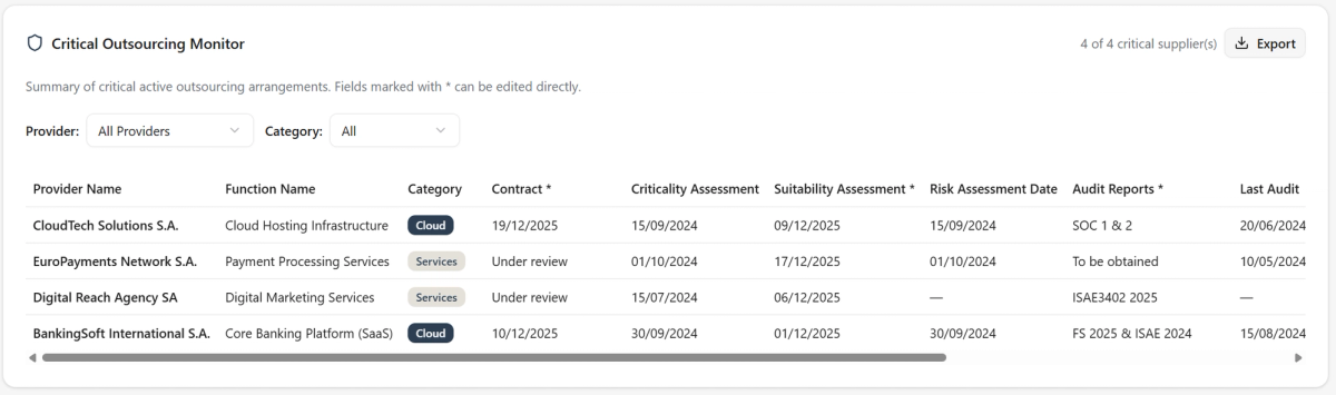 CSSF compliance doesn't have to be complicated. This tool handles the technical requirements so you can focus on actually managing your outsourcing relationships.